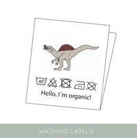 - Aufnäher mit verspieltem Motiv und Hinweisen zum Waschen.