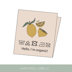 - Patch avec un motif ludique, informations sur les conseils de lavage & citations sur l'autre face.